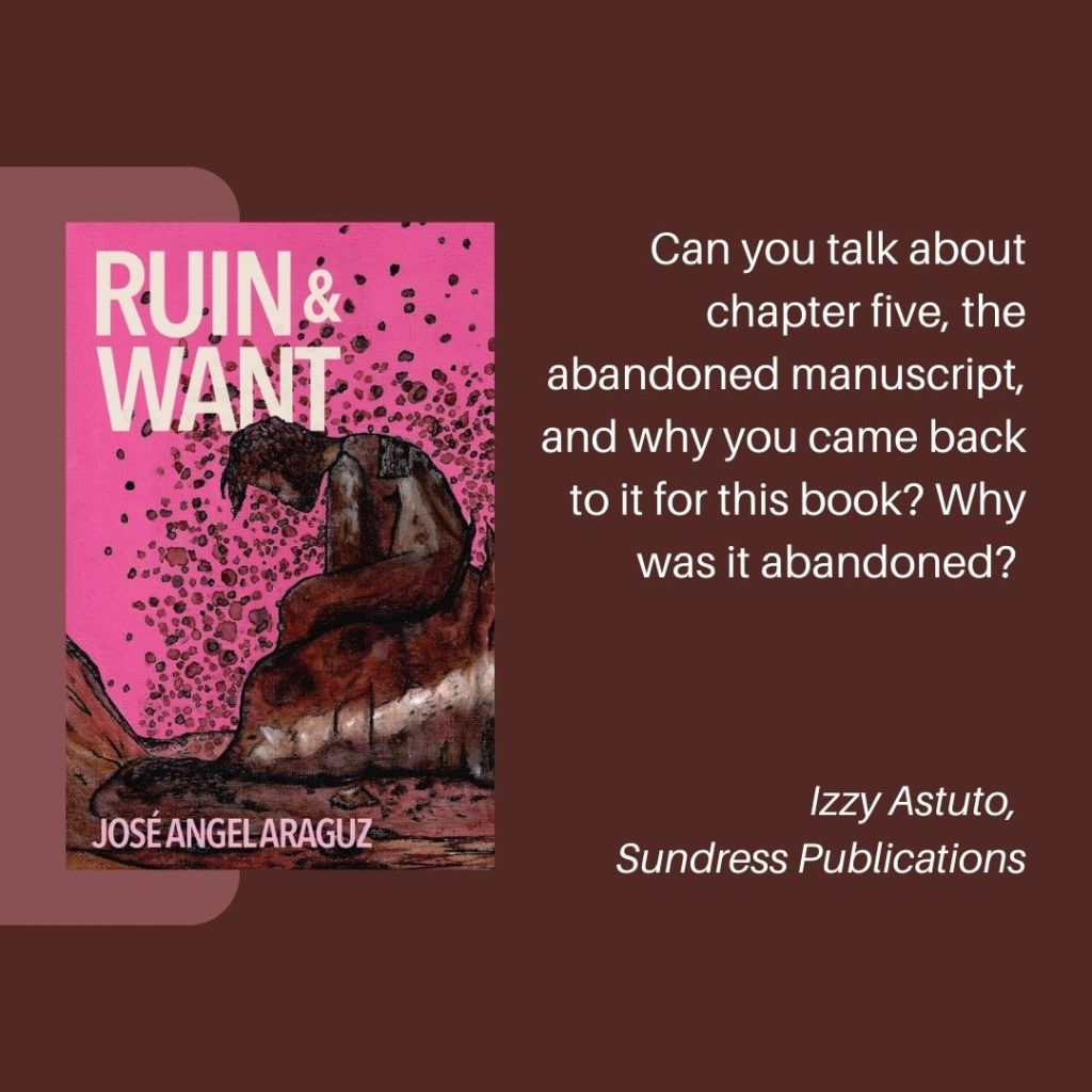 Izzy Astuto: Can you talk about chapter five, the abandoned manuscript, and why you came back to it for this book? Why was it abandoned? Izzy Astuto, Sundress Publications